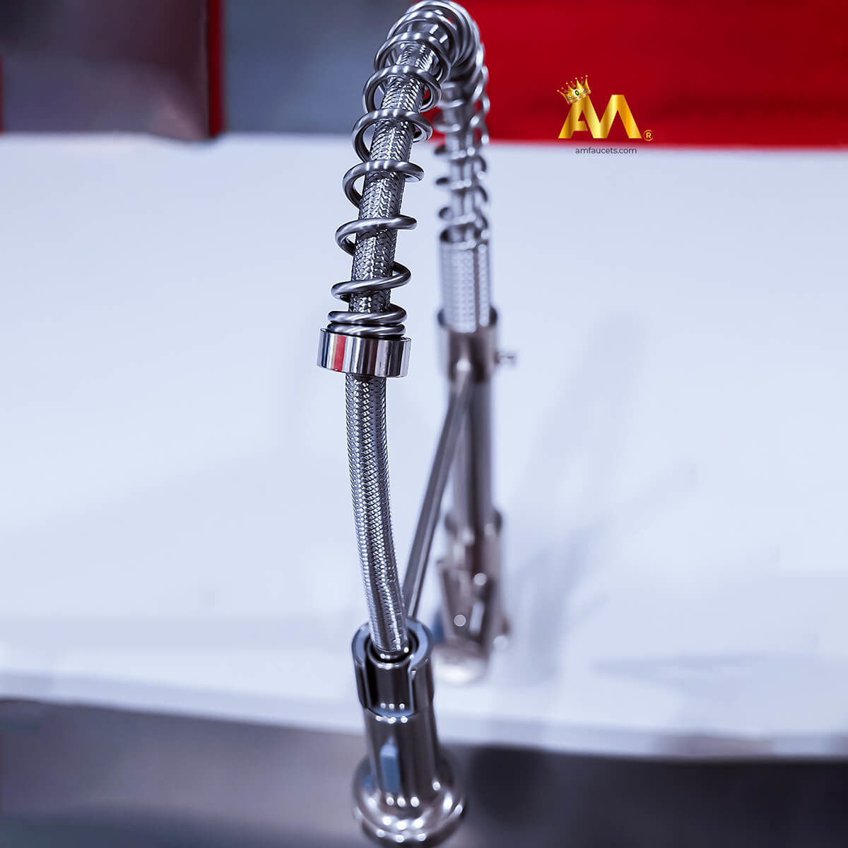 The kitchen centerpiece of your dreams has arrived with the high-quality AM Stainless steel Faucet you will be wishing you had sooner. A stainless steel faucet designed to transform any kitchen into a fine culinary workspace, the industrial draw-out faucet is 17.38 inches tall and fits most cabinets. This package includes a 10" brusch cover plate for a (3) hole sink at a discount when